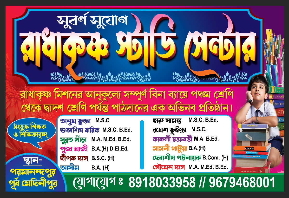 RADHAKRISHNA MISSION administers 5 Model schools in different areas and districts of Pubra & Paschim Medinipur, Howrah, Hooghly & Bankura in West Bengal.